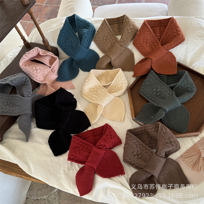 子供用マフラー秋冬新作女の子マフラー赤ちゃんクロスニット毛糸首カバー男の子首保護防風保温