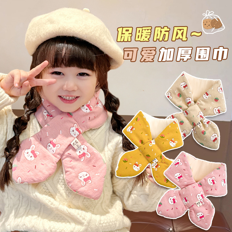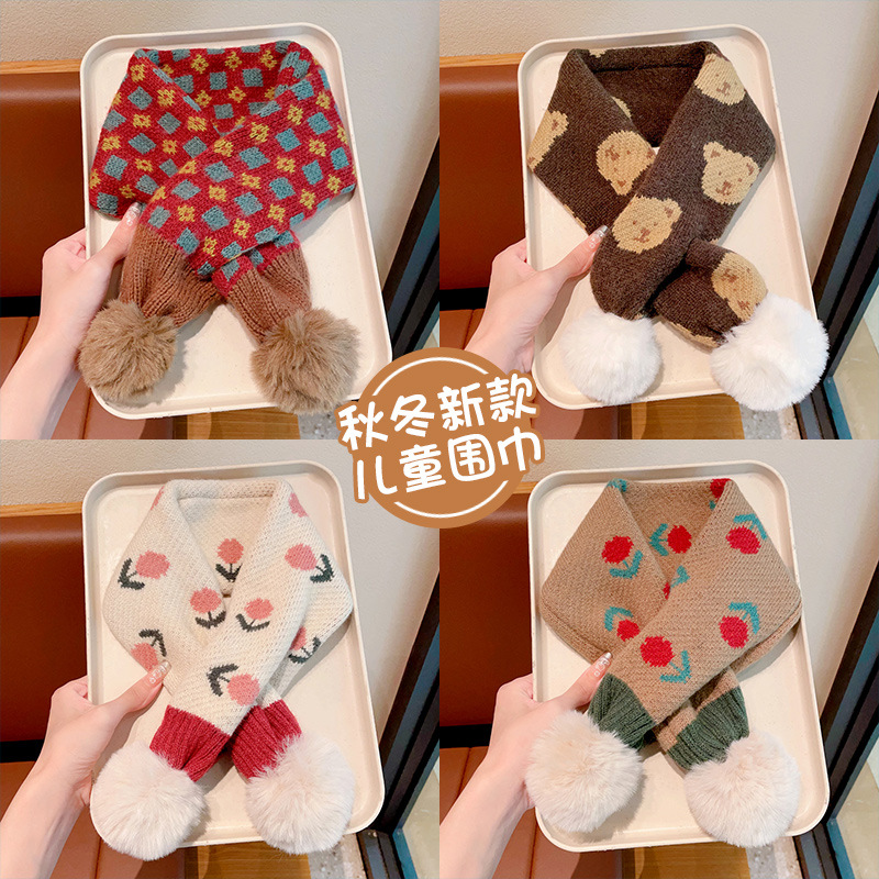 一潘韓国児童マフラー冬の新型ins保温交差ベアーが首を囲んでいる男の子の女の子が首を囲んで卸売りする