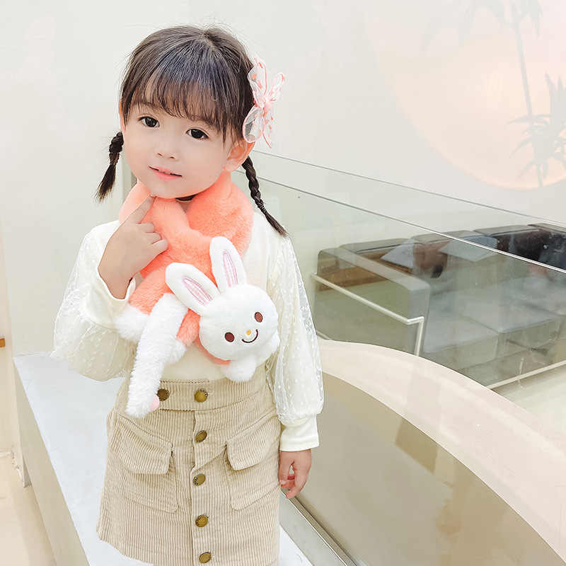 2024新型児童マフラー冬のアニメ子供は保温してベルベットを厚くして、ウサギのぬいぐるみの男女のマフラーを真似ている
