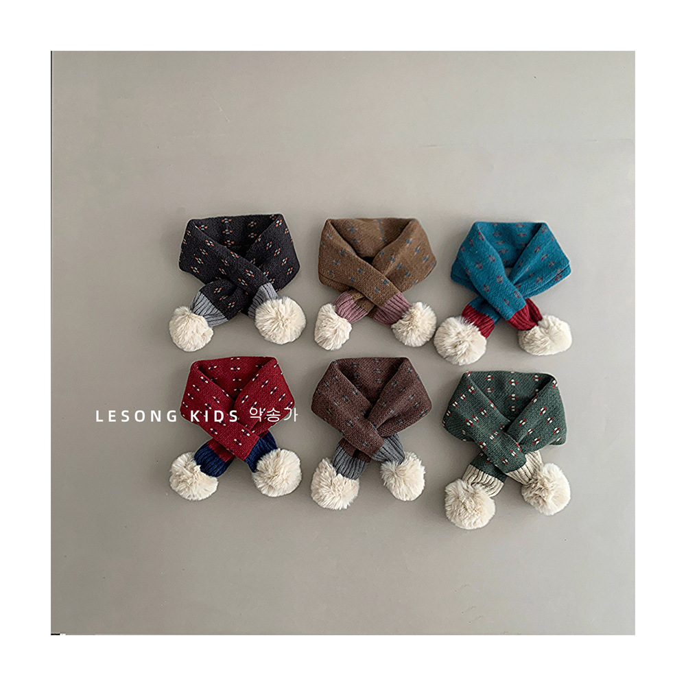 子供の交差マフラー秋冬の新型男の子と女の子の防風ニットは厚い保温の赤ちゃんの毛玉が首を囲んで首を保護します。