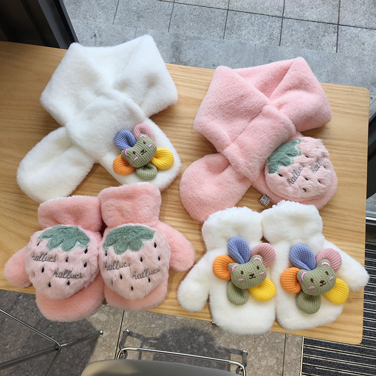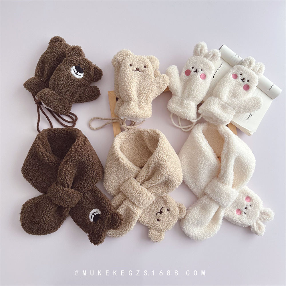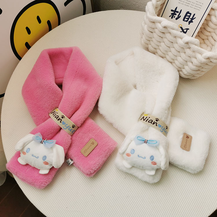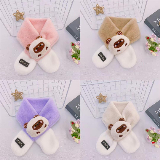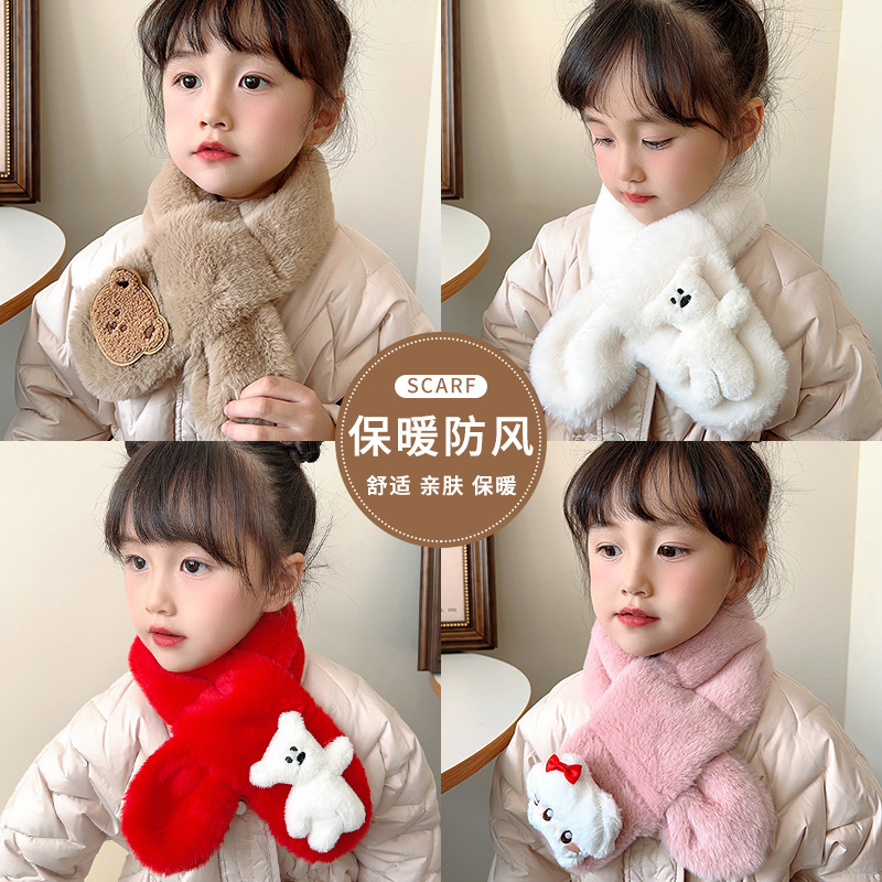 2024新型児童マフラー秋冬のぬいぐるみかわいいアニメ熊は保温してウサギ毛防止赤ちゃんが首を囲んでいる