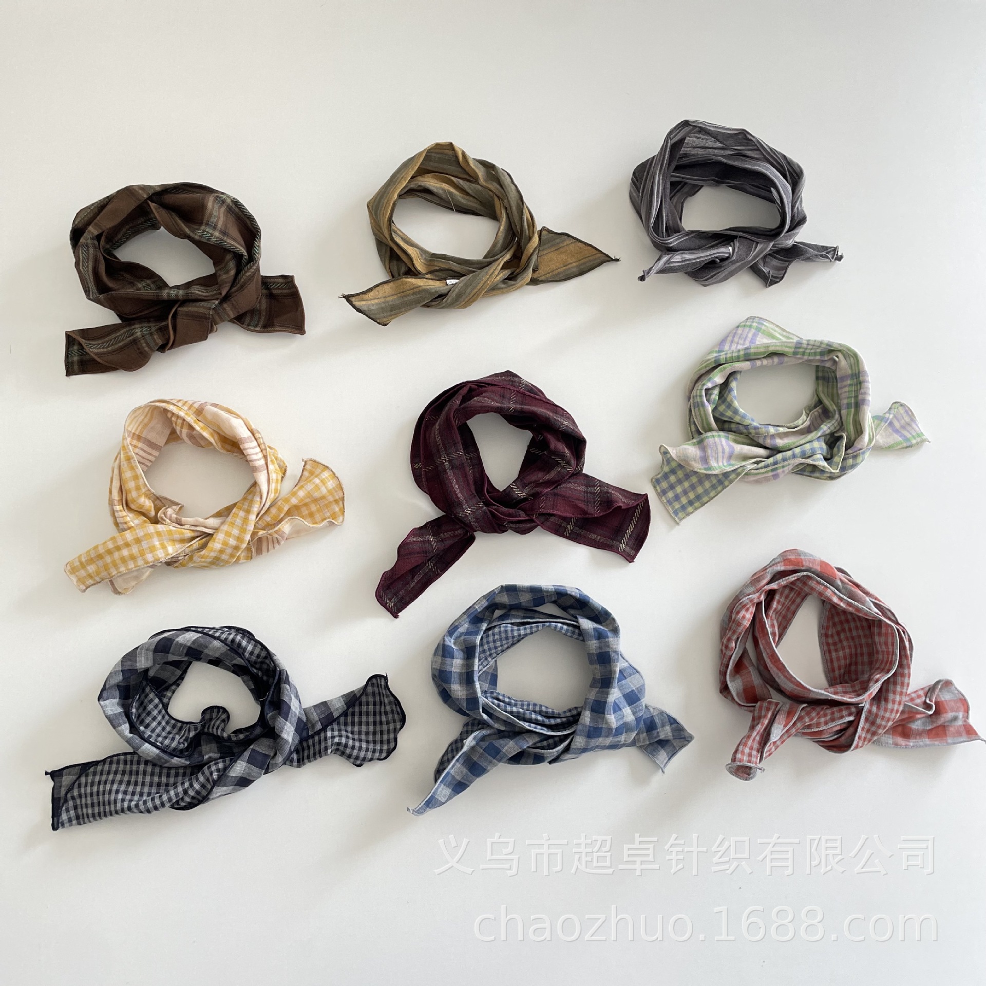 子供用マフラー春と秋の薄いタイプの防風保温男女の子供の格子の子供は風を遮ります。