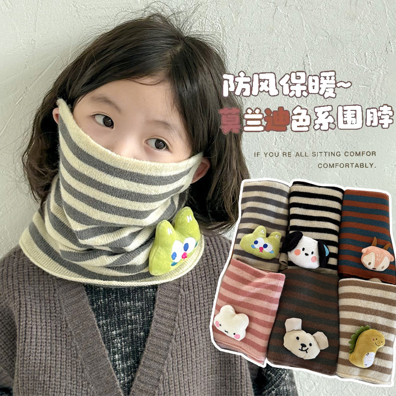 縞模様の子供が首を囲んでいる秋冬ニット防風かわいい保温赤ちゃんの首カバーアニメ男女児童防寒マフラー
