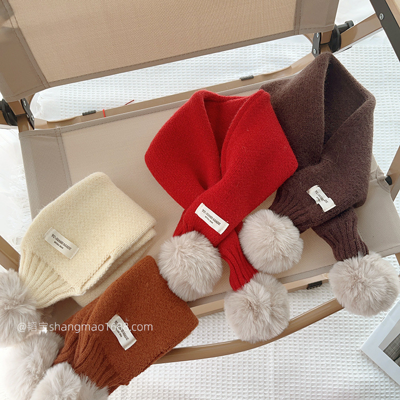 Ins韓国洋気子供マフラー冬赤ちゃん保温男女子供純色毛玉クロスニットマフラー潮