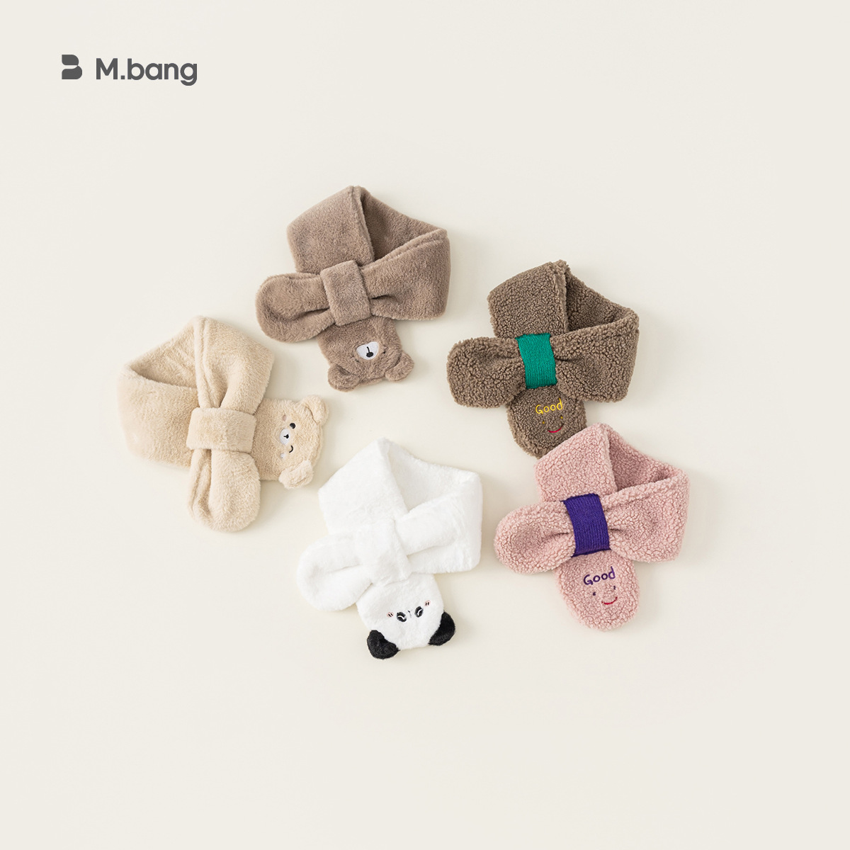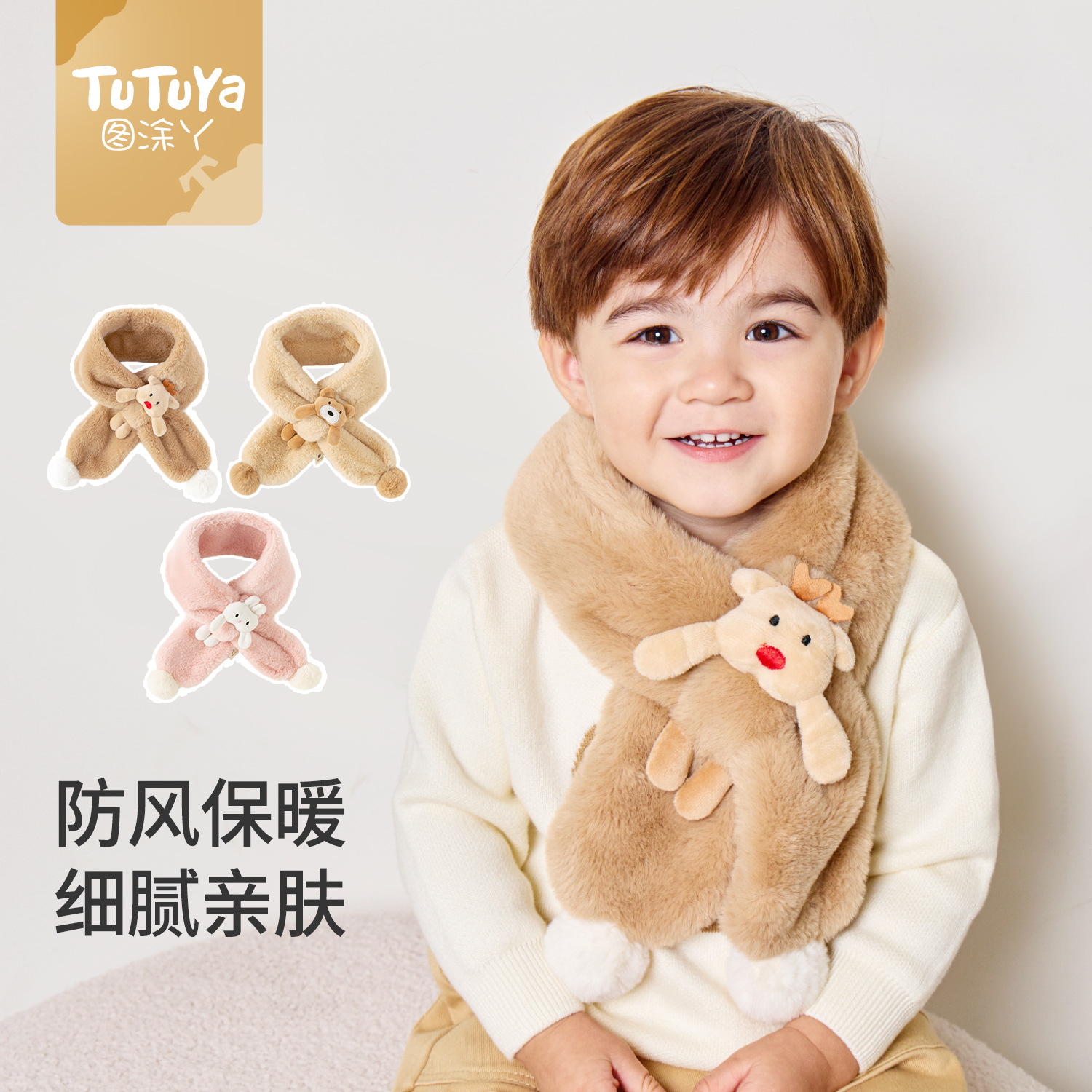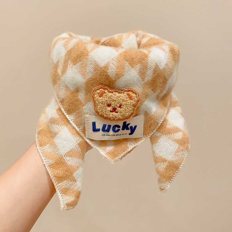 2024新型児童マフラー秋冬のぬいぐるみかわいいアニメ熊は保温してウサギ毛防止赤ちゃんが首を囲んでいる
