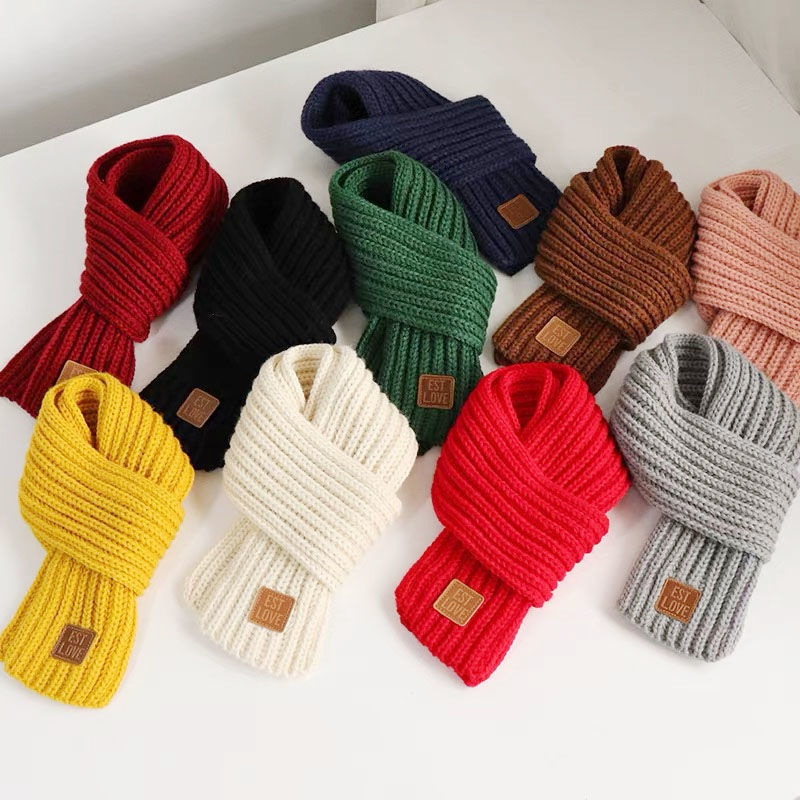 W1 韓国版 2024 新しいウールニットレザーラベルスカーフ男の子と女の子用無地シンプルな秋と冬の赤ちゃん暖かい