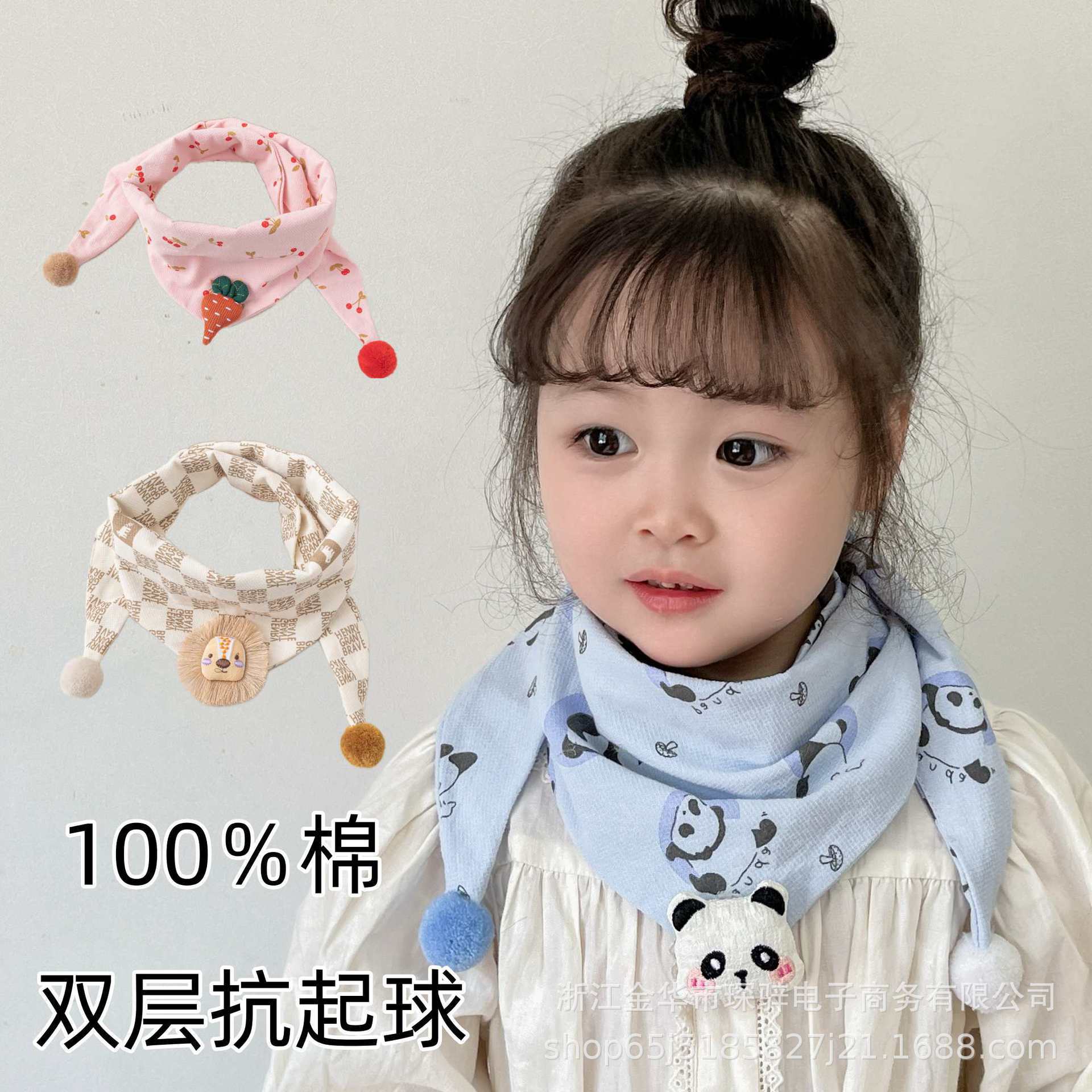 2024秋冬綿麻子供マフラー男の子女の子漫画三角タオル赤ちゃんよだれタオル保温赤ちゃんマフラー