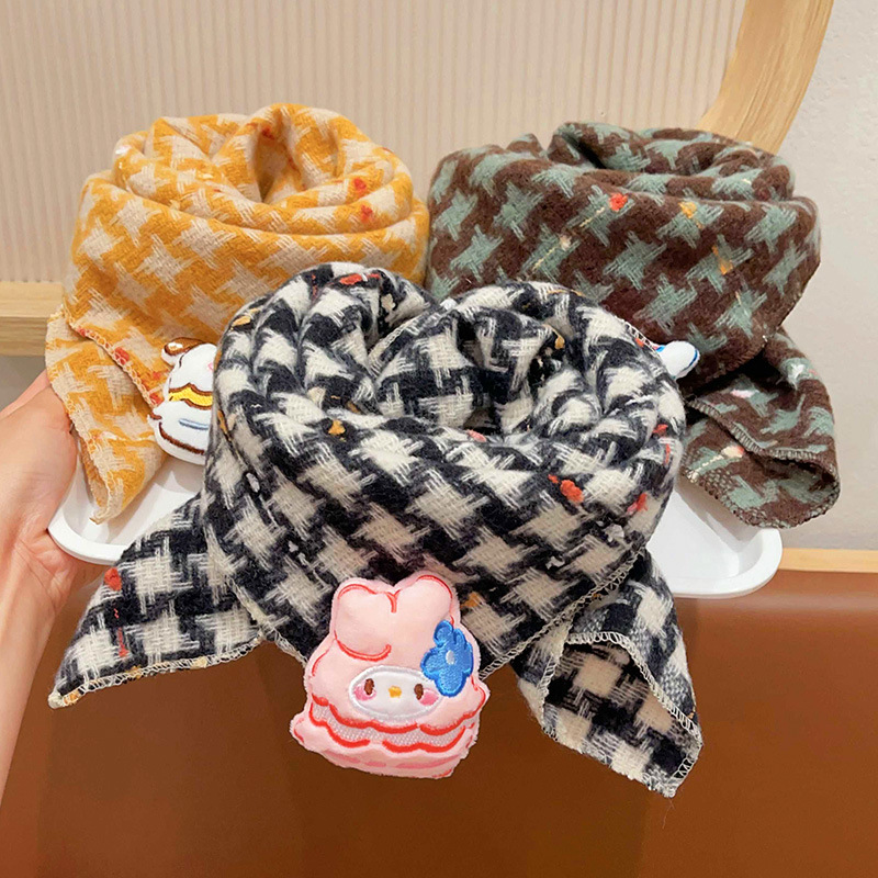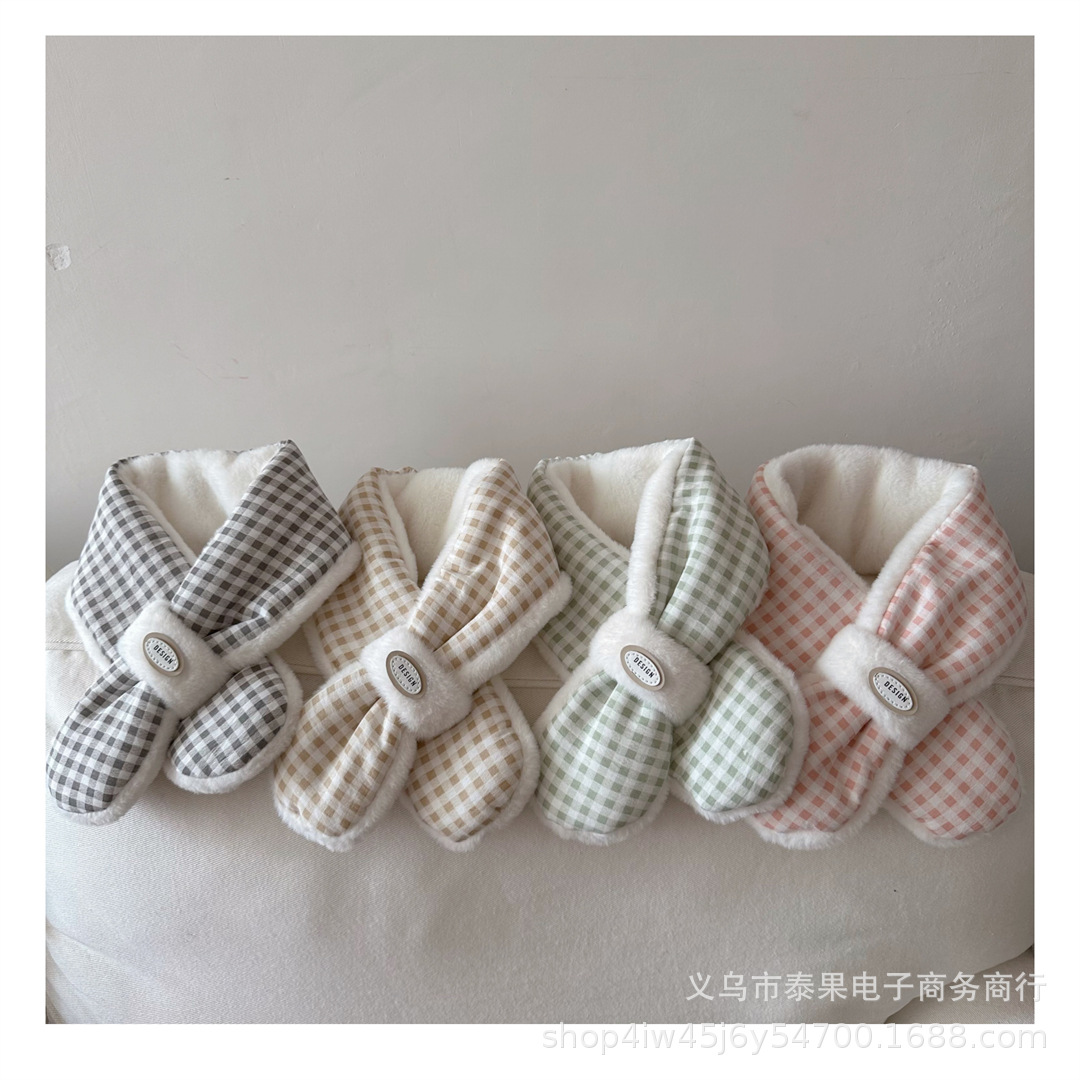 子供用マフラー2024秋冬の新しい女の子の千鳥格が首を囲んでいる女の子は保温防風赤ちゃんの首を厚くしている