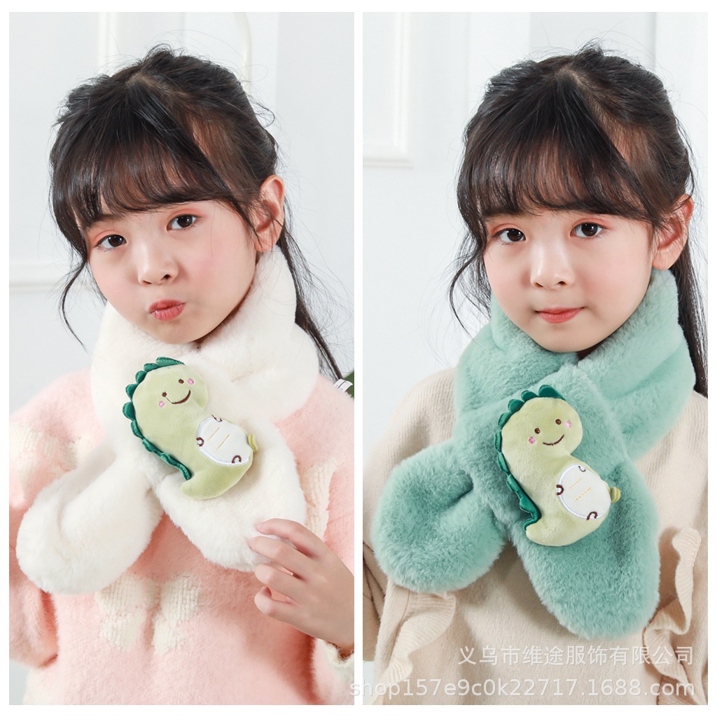 2024年子供用スカーフ親子恐竜ぬいぐるみ風ウサギ毛クリスマス男の子女の子スカーフ秋冬暖かいネックウォーマー
