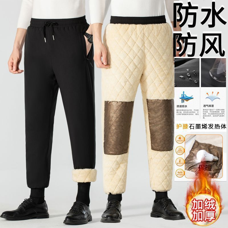 新型グラフェン保温自己発熱ベルベットカジュアル綿ズボン冬羊小パイルズボン防水防風膝保護ズボン