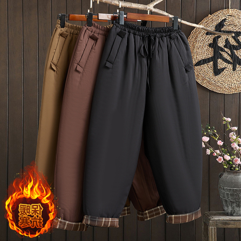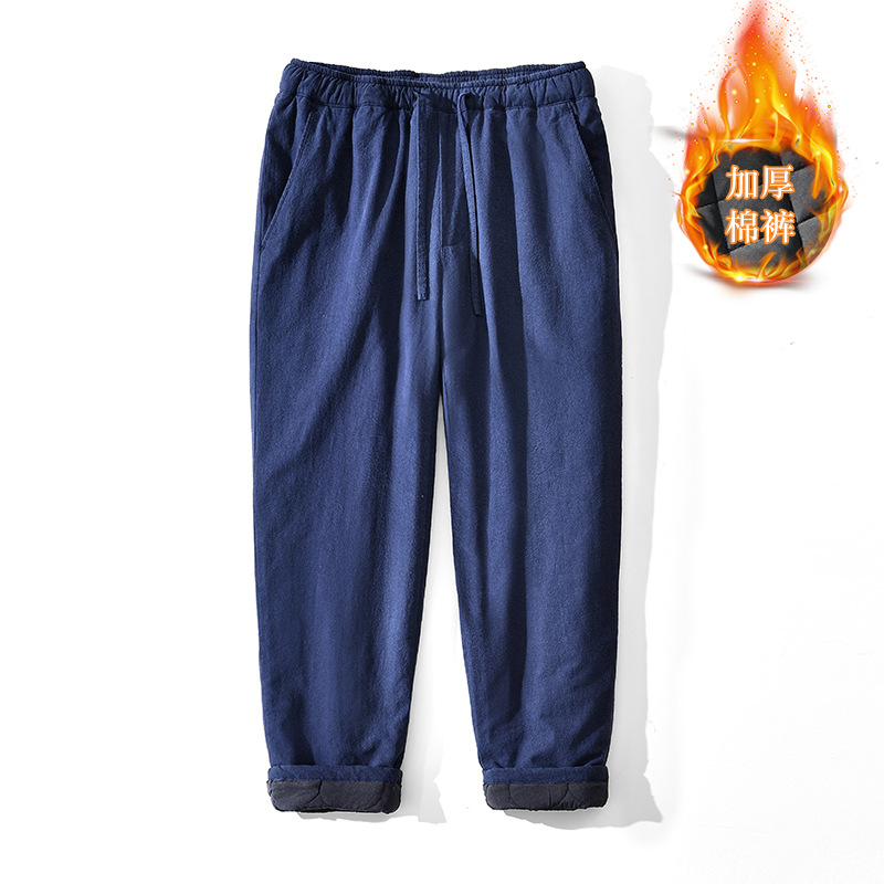 メンズ冬用ハイウエスト保温純綿手作り厚手保温綿パンツホームパンツ
