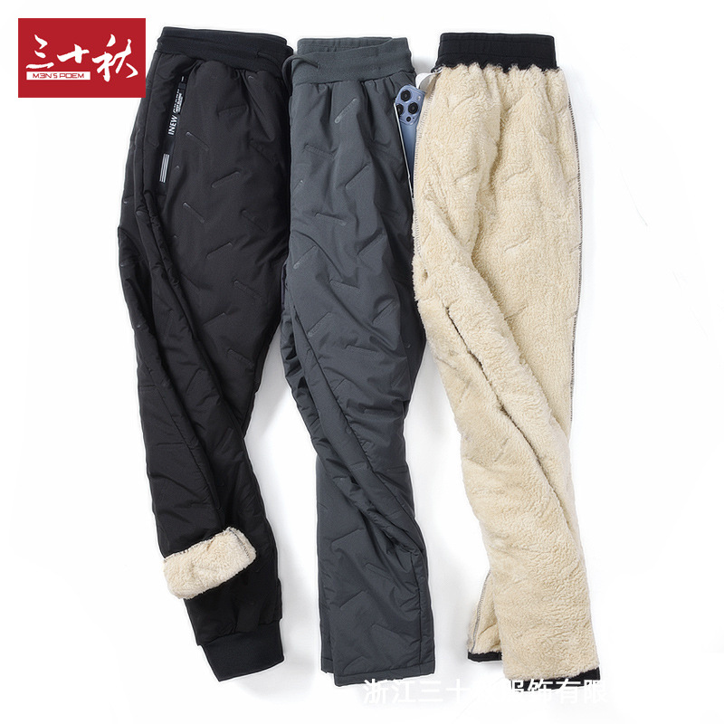 25年冬の羊の小毛綿のズボンの新型は綿を挟んでカジュアルで厚い防風の防寒の保温のまっすぐな筒の羊の小毛の衛のズボンを挟みます。