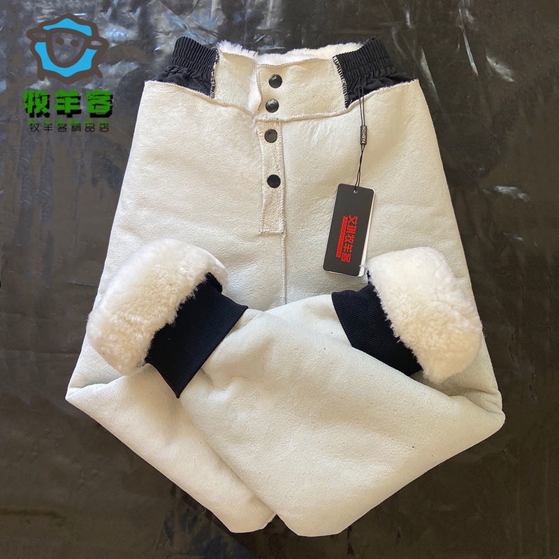 中高年純ウール毛皮一体皮ズボン保温羊皮内胆高腰綿ズボン羊毛ズボン男冬茗賞