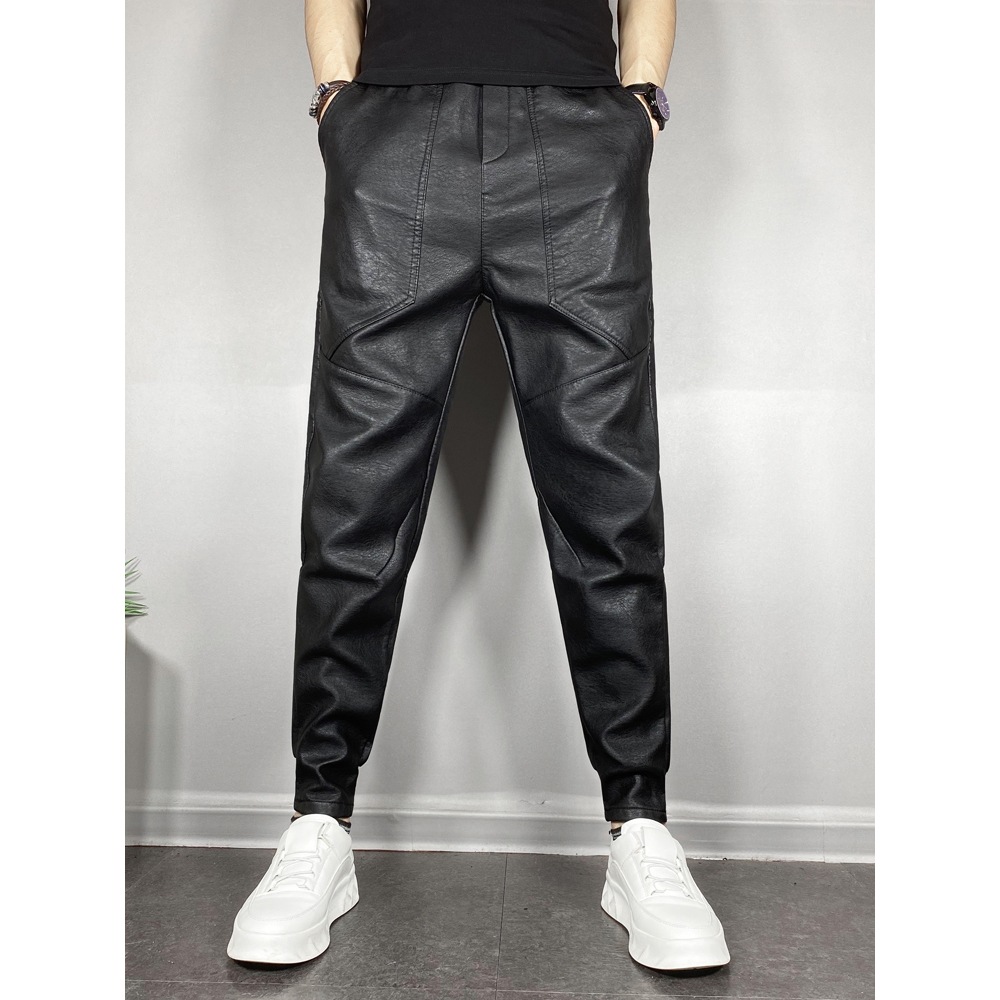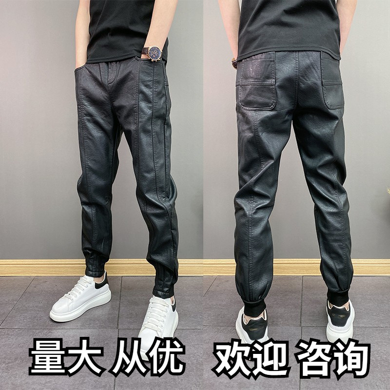 2023秋の男性の皮のズボンのクラブの潮の男の修身のpuのズボンの青年の大きいサイズの潮流の男のズボンの機関車の皮のズボンの卸売り