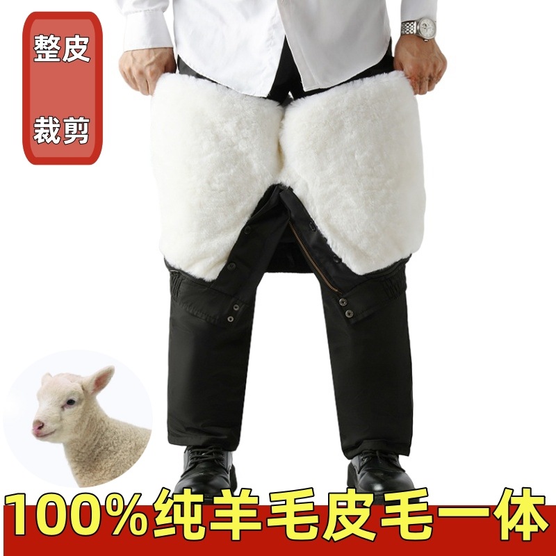 羊皮ズボン男性保温冬毛皮一体ズボン綿ズボンウール皮ズボン伸縮防寒ズボン