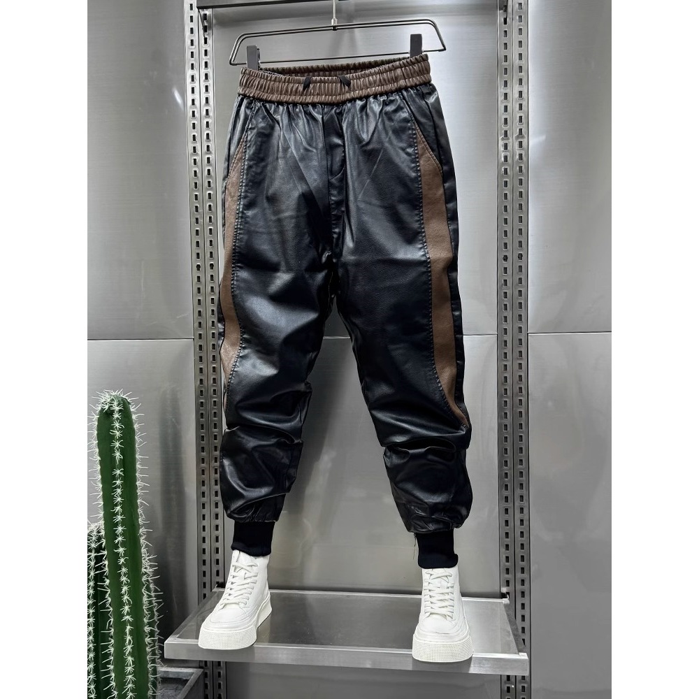 LIYANG2025 春と秋のメンズ新韓国スタイルトレンディなブランドカラーマッチングルーズカジュアルストレートメンズパンツノスタルジックなレザーパンツ