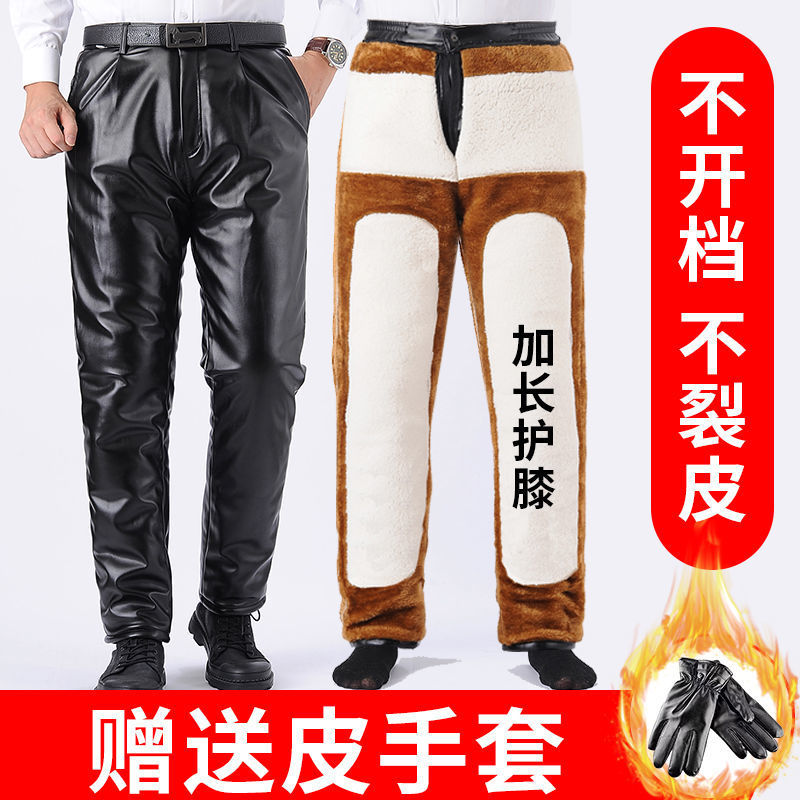革のズボンの男性はベルベットを厚くして、外でバイクに乗って防風防水保温男性の綿のズボンを運転して太った