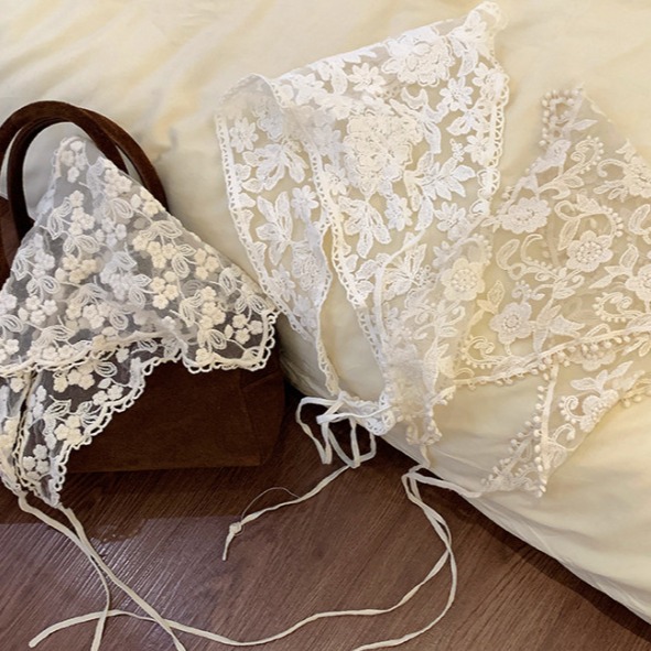 フランスの雰囲気感レースのスカーフは甘くて可愛い田園風の三角タオルです。