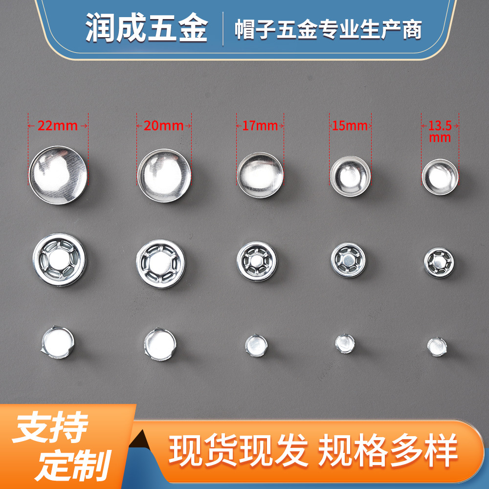 帽子のトップボタン、6穴鉄芯、三爪帽子トップバックル、金属製キャップバックル、野球帽トップバックル、ロゴ印刷可能、リベット