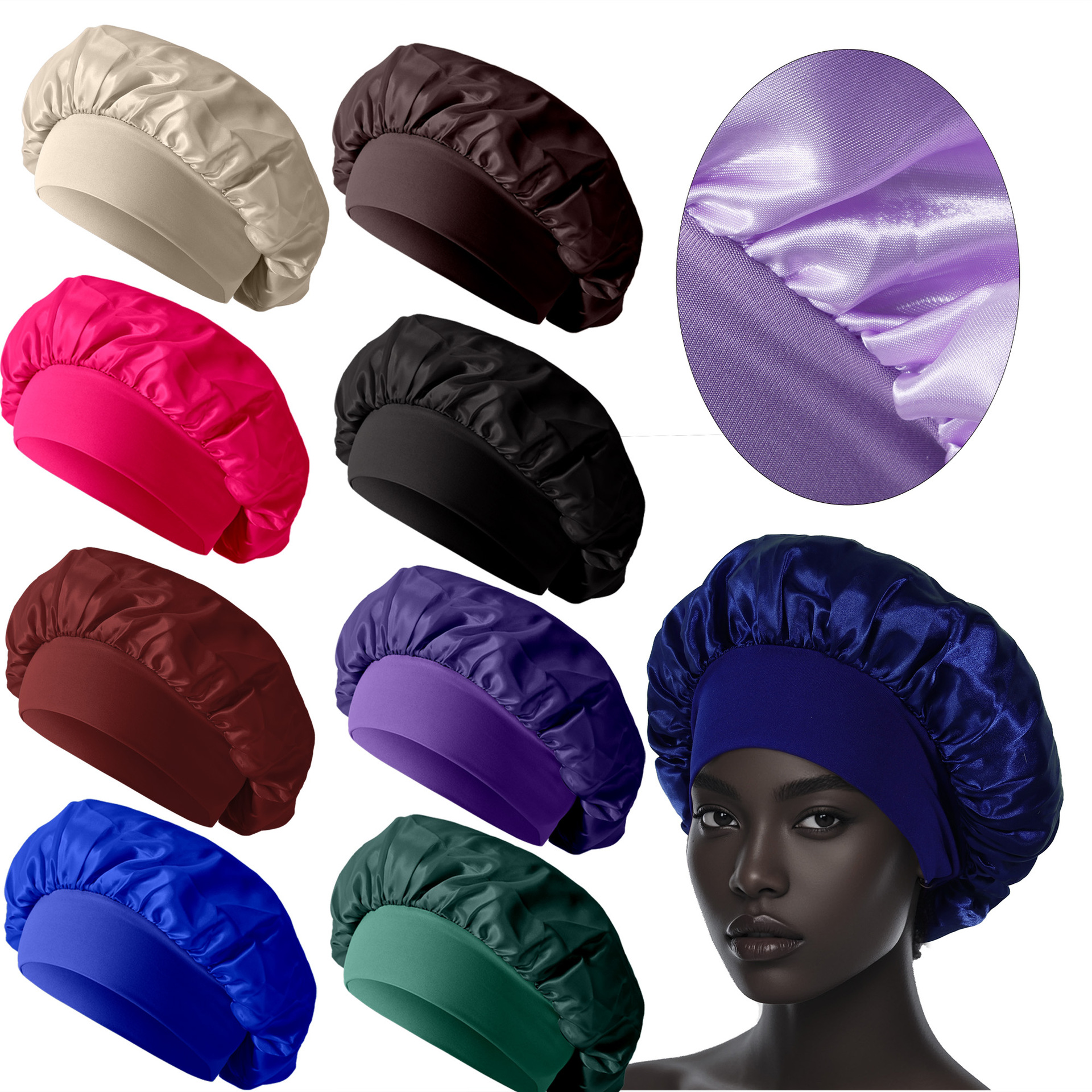 つば広高弾性ヘッドバンドナイトキャップ、女性用化学療法用帽子、ヘアケア帽子、伸縮性のあるファッショナブルなケア帽子、模造シルク高級帽子