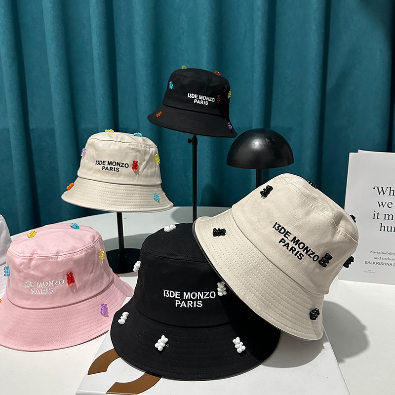 四季型の全綿のアルファベット13de樹脂の熊の漁師の帽子の女性の立体の熊の韓国版は顔の小さい日よけの盆の帽子を現します。