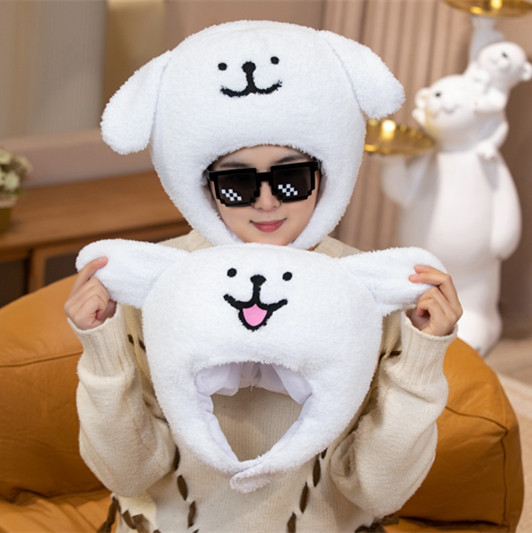 国境を越えた韓国のライン子犬の頭の帽子の人形のかわいい柔らかい萌え系の少女の心の活動の写真の道具