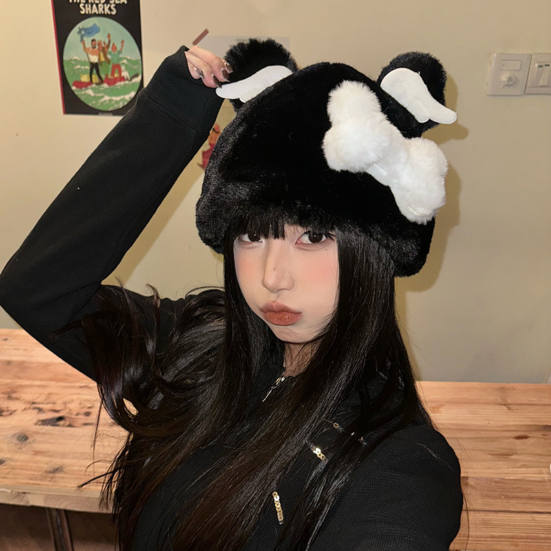 自家製の冬の暖かいfufu小天使の翼の耳の頭の帽子の亜比の骨の熊の耳の頭の帽子