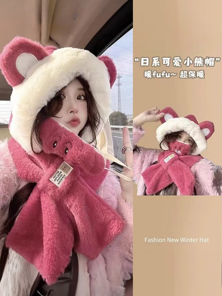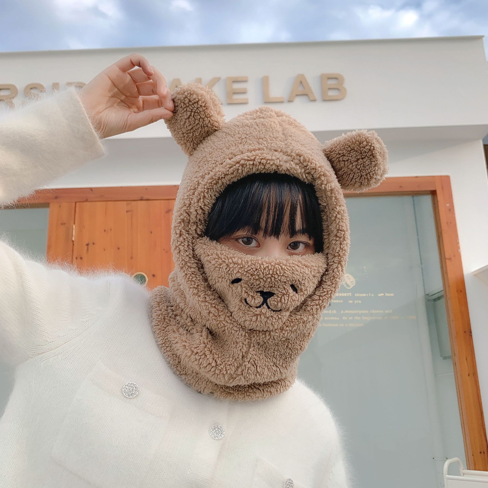 かわいい熊の帽子の一体女性の冬の耳保護カバー雷鋒帽子のぬいぐるみ自転車保温スキー帽