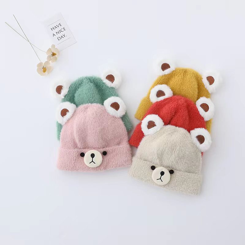 赤ちゃんのニット帽秋冬の赤ちゃんの保温ミンクのウールの帽子が可愛いです。