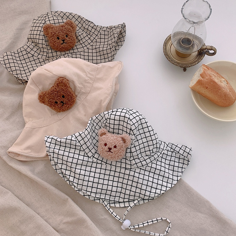 ベビーフィッシャーマンハット春と秋の薄いかわいいクマの日よけ帽子子供の赤ちゃんの夏の旅行日焼け止め帽子トレンディ