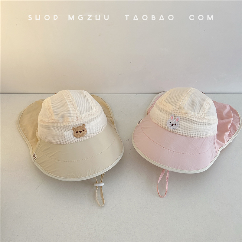 子供用帽子夏通気性ショールネックプロテクターかわいいクマカラーマッチング大きなつば日焼け止めサンハットベビーサンハット