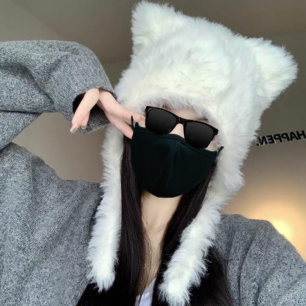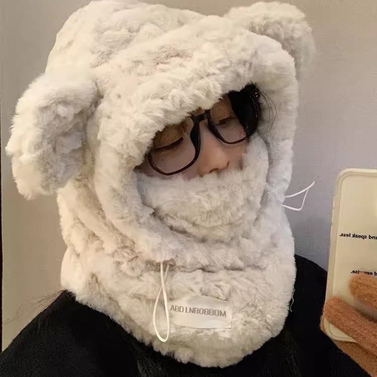 かわいい厚いぬいぐるみの熊の帽子のマスクの一体の女性秋冬の韓国版の保温の耳の帽子は自転車に乗って寒波を防ぎます。