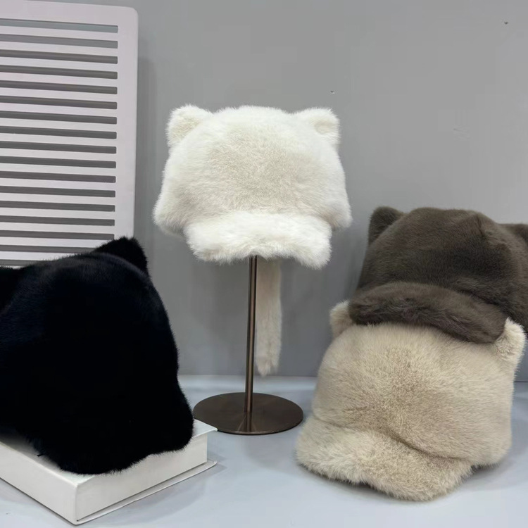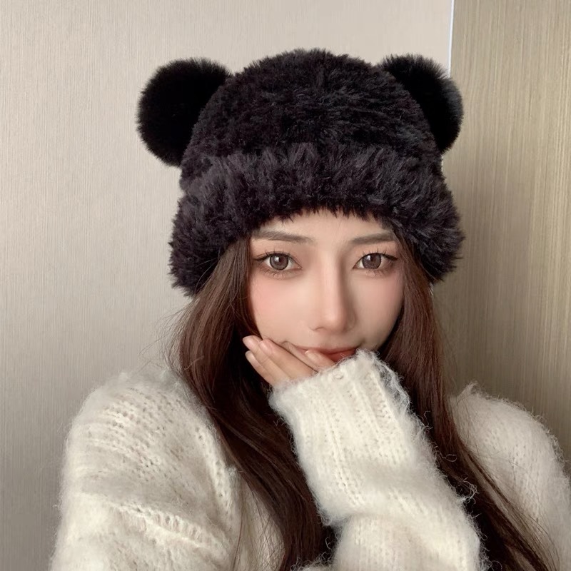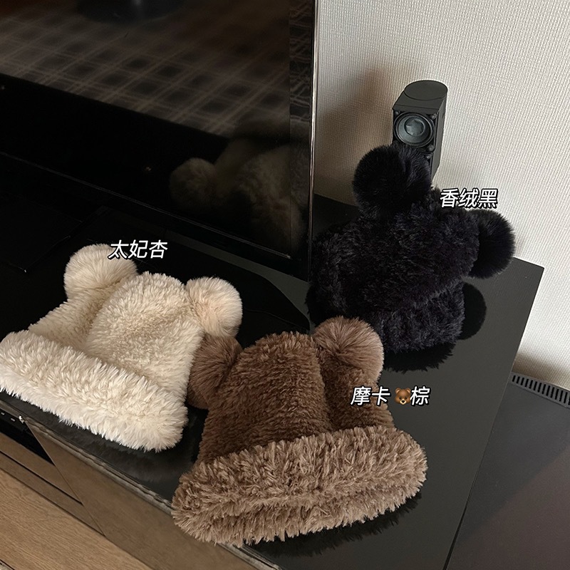 キキの雨の帽子業の韓国版秋冬の新型の毛茸の熊の耳の熊の帽子は頭の帽子を包んで毛糸の帽子を厚くします。