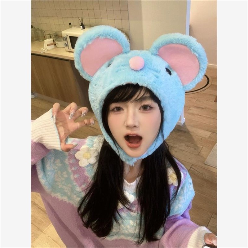 かわいい米の小さい青いネズミの創意の毛の帽子の子供の漫画の人形の超萌の少女は秋冬を撮影します。