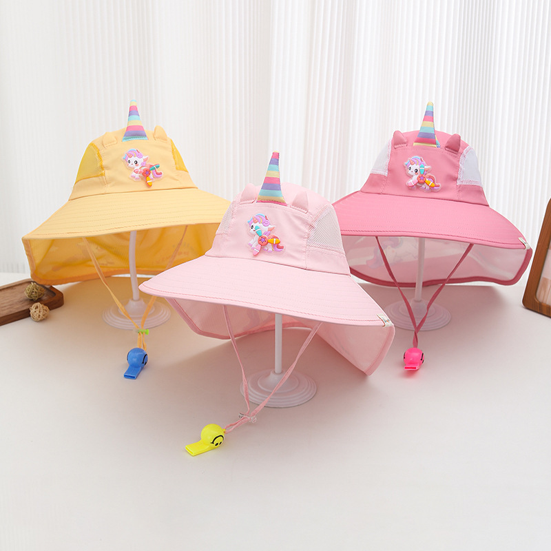 夏ユニコーン子供用帽子ショールハット男の子と女の子用薄いハーフメッシュ漁師帽子漫画風車日焼け止めつば広