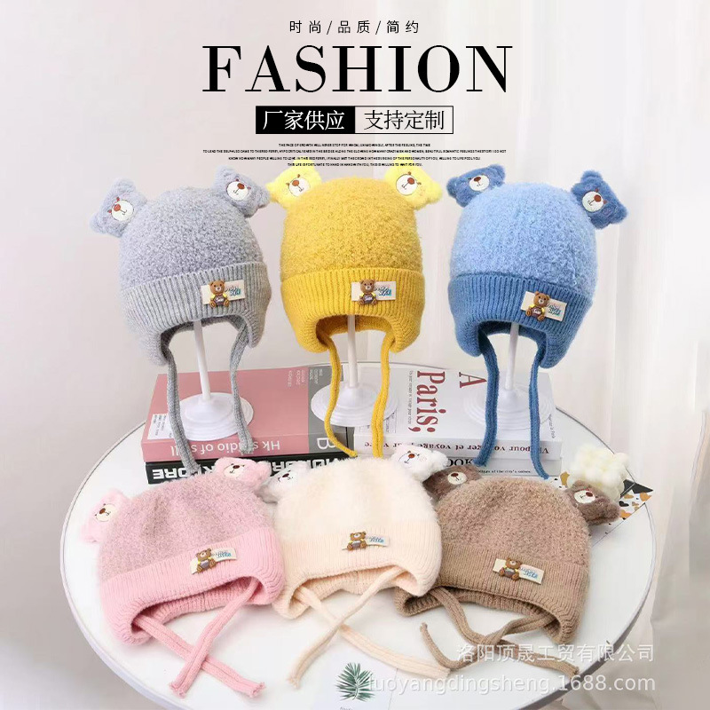 ベルベットの耳保護帽子供冬かわいいベアーの耳が色にぶつかった2024新型保温厚いニット毛糸帽