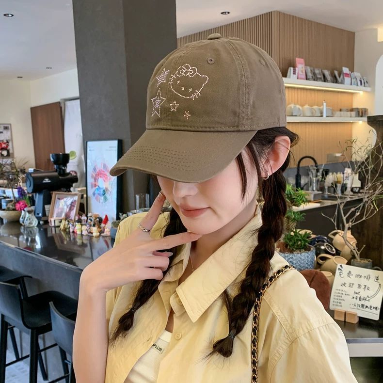 ネット赤装飾ハローキティ人形レース野球帽夏メッシュ帽子通気y 2kギャルアヒル舌帽