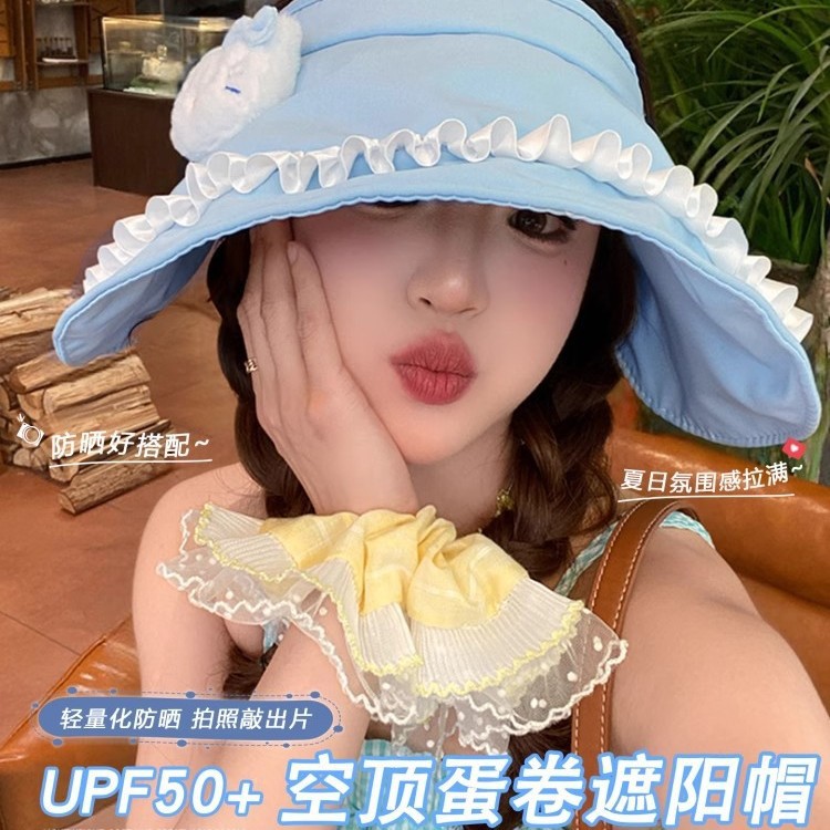 新しいかわいいキャンディーカラーのエッグロール空のシルクハット人形レース装飾カジュアル夏のサンシェード通気性日焼け止め帽子