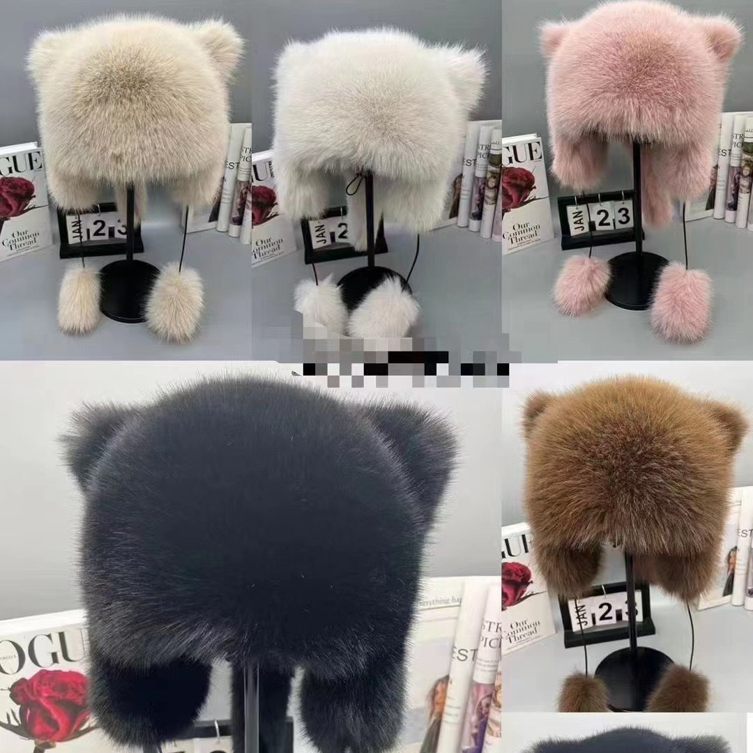 かわいい毛のふわふわした熊の帽子の子供の秋冬の新型の厚い保温の耳の雷の前線の帽子の猫の耳のぬいぐるみの頭の帽子