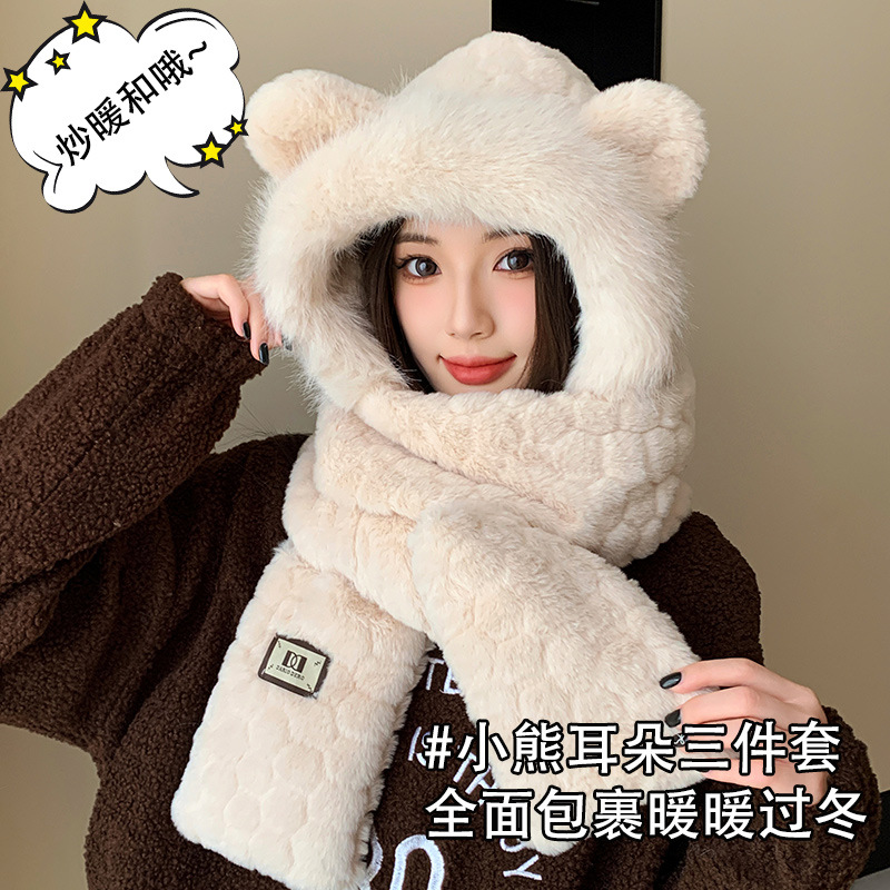 熊帽の子供の冬のマフラーは帽子と一緒に保温防寒マスクをして首を囲んで3セットの2024新型