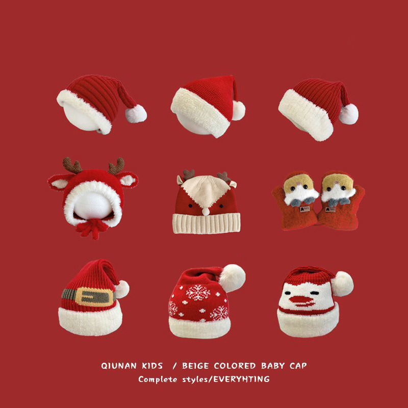一潘韓国の子供の帽子とベルベットの赤いお祝いの男女の子供のニットのマフラーの赤ちゃんのクリスマスの帽子の保温カバー