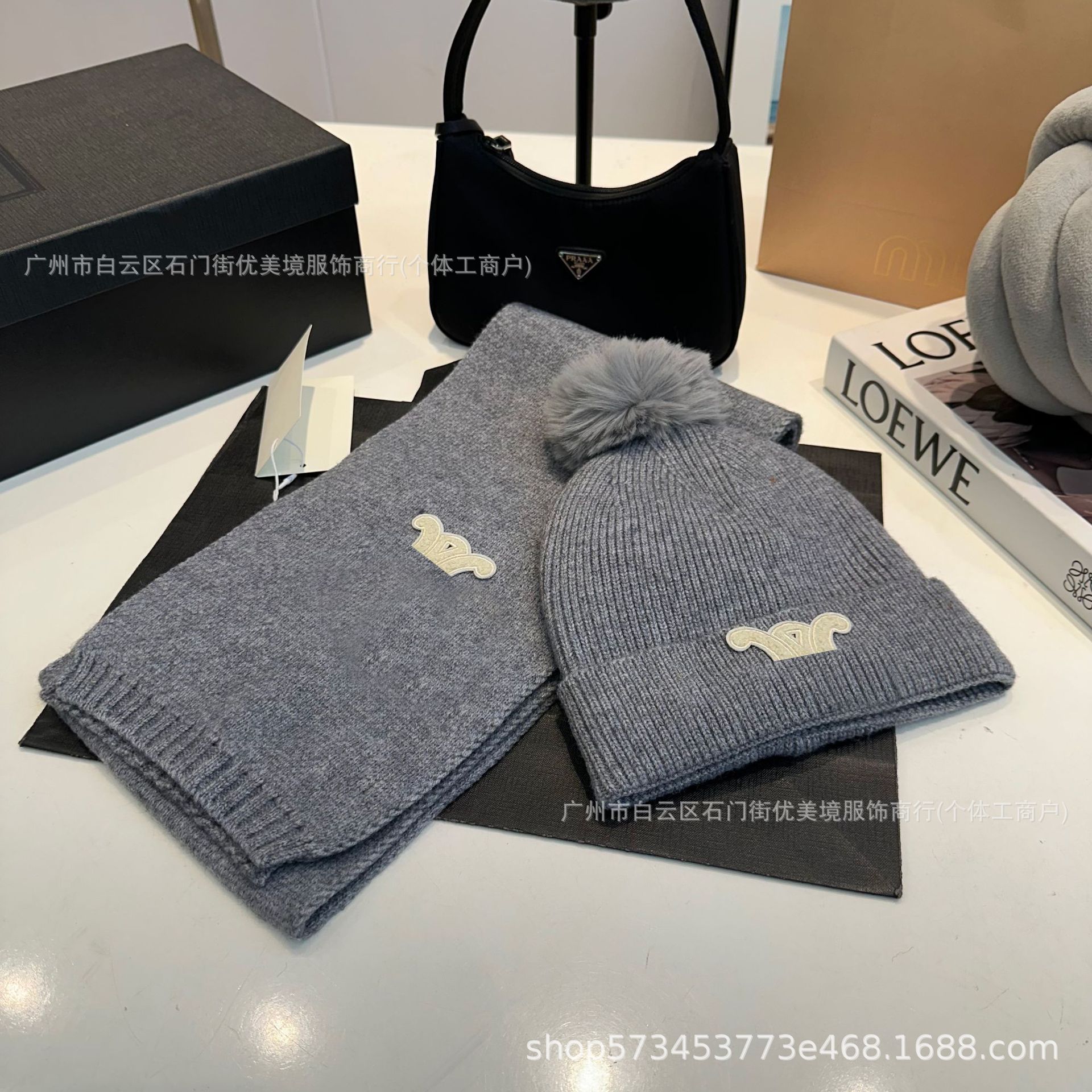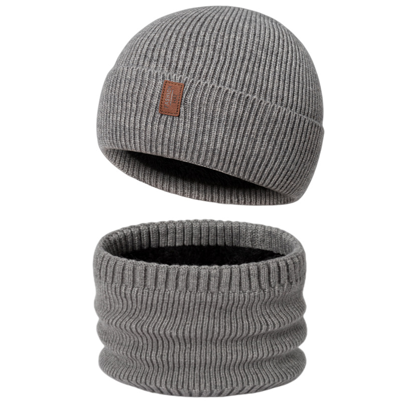 海外で人気のある革製マフラー帽子セットウールニット男性保温成人マフラー長マフラー帽子