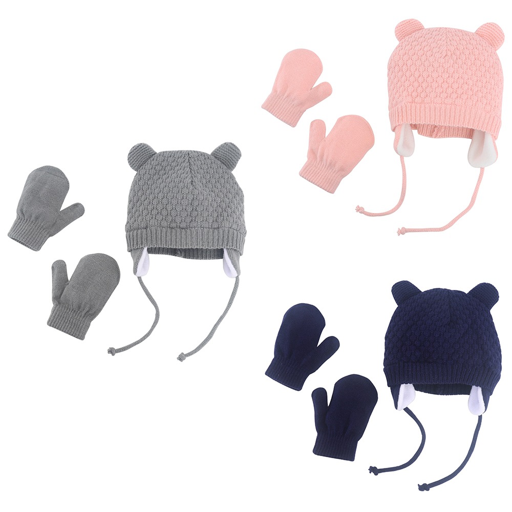 外国貿易速売通クロスボーダー児童ニット帽子手袋2点セット赤ちゃんベルベット保温耳毛糸帽子