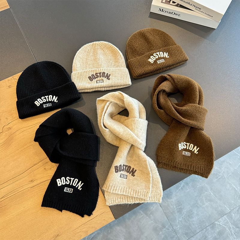 ニットマフラーの帽子は冬に暖かくて、新しい純色のシンプルな韓国版学生帽子マフラーセットを厚くします。