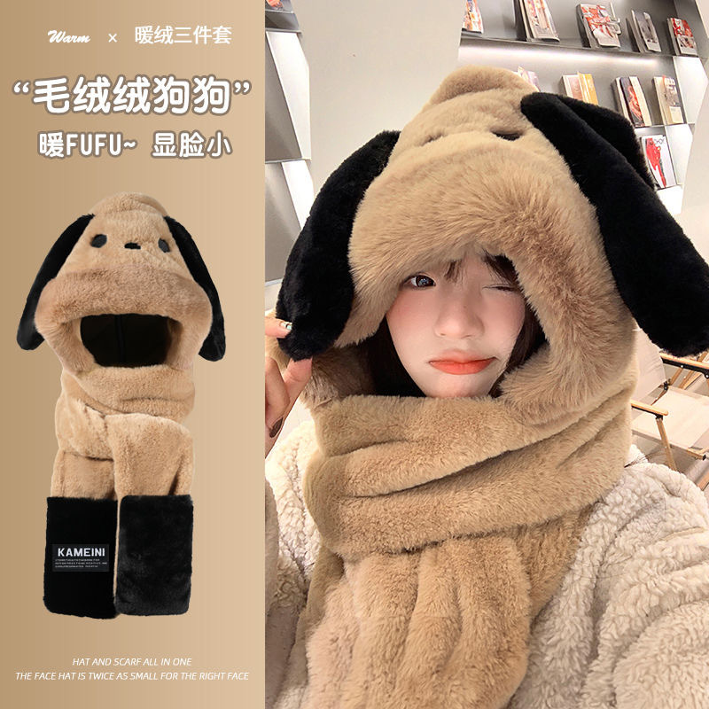 冬のぬいぐるみのマフラーの女子学生の玉桂犬の防寒の新型の百合の韓国版の保温の秋の短いモデルのアニメのマフラーの手袋