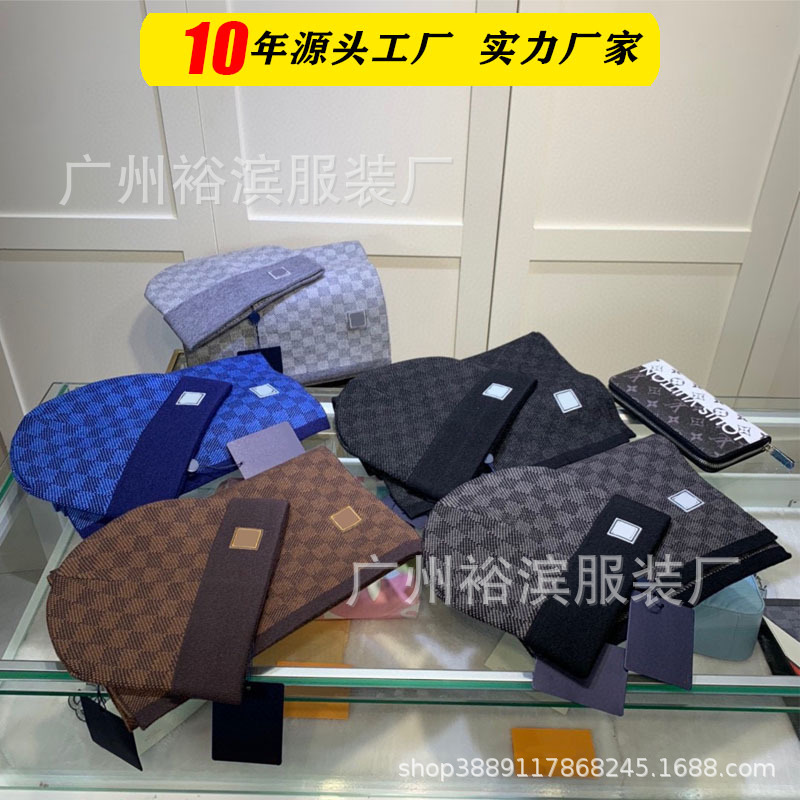 欧米の外国貿易の大きいブランドのマフラーの毛糸の帽子の2つのセットは秋冬のネットの赤い同モデルのl家の格子のマフラーの卸売りを詰めます。