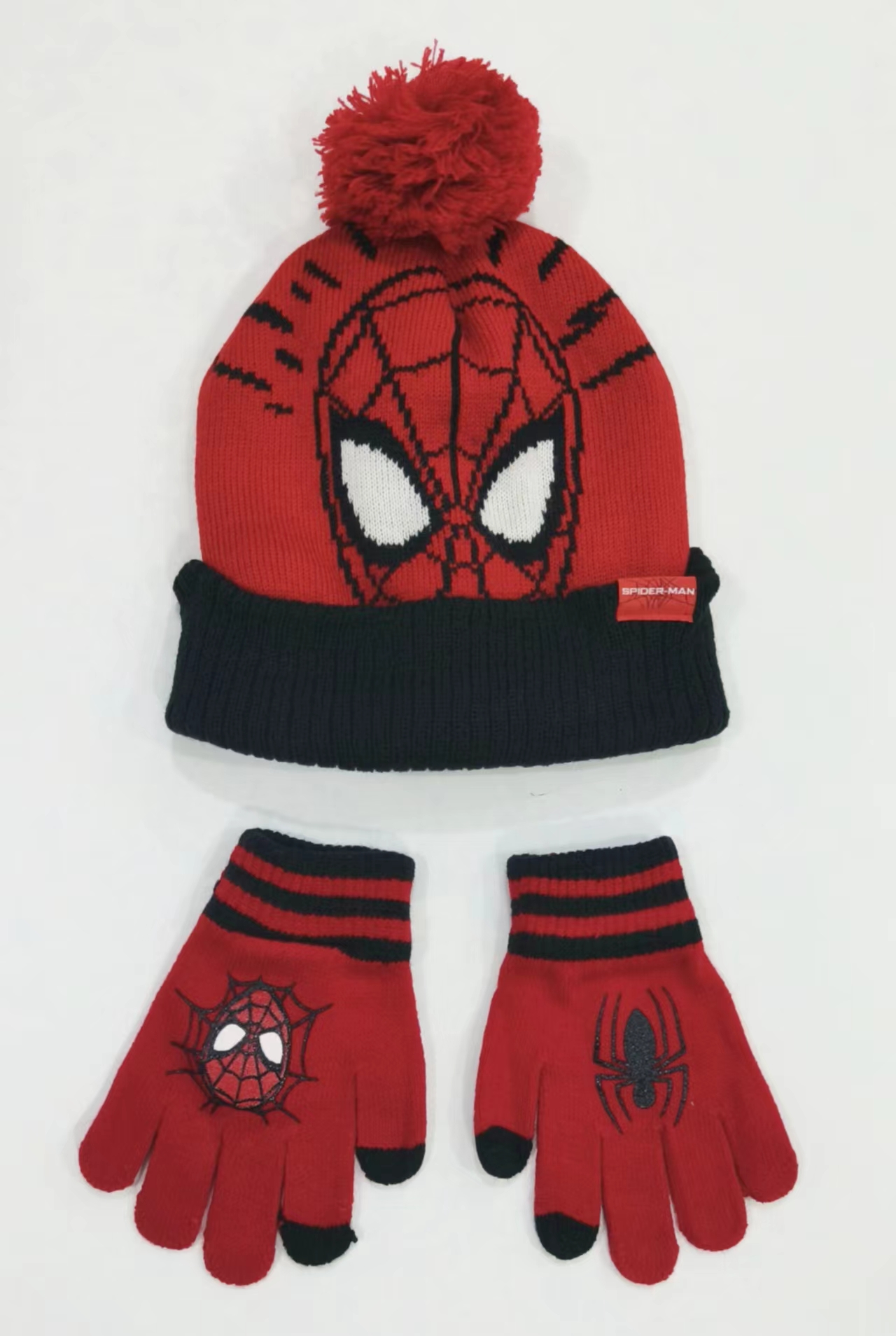 外国貿易秋冬男児ジャカードスパイダーマン帽子非タッチパネル手袋は、2歳から10歳まで50歳から54頭囲に適している