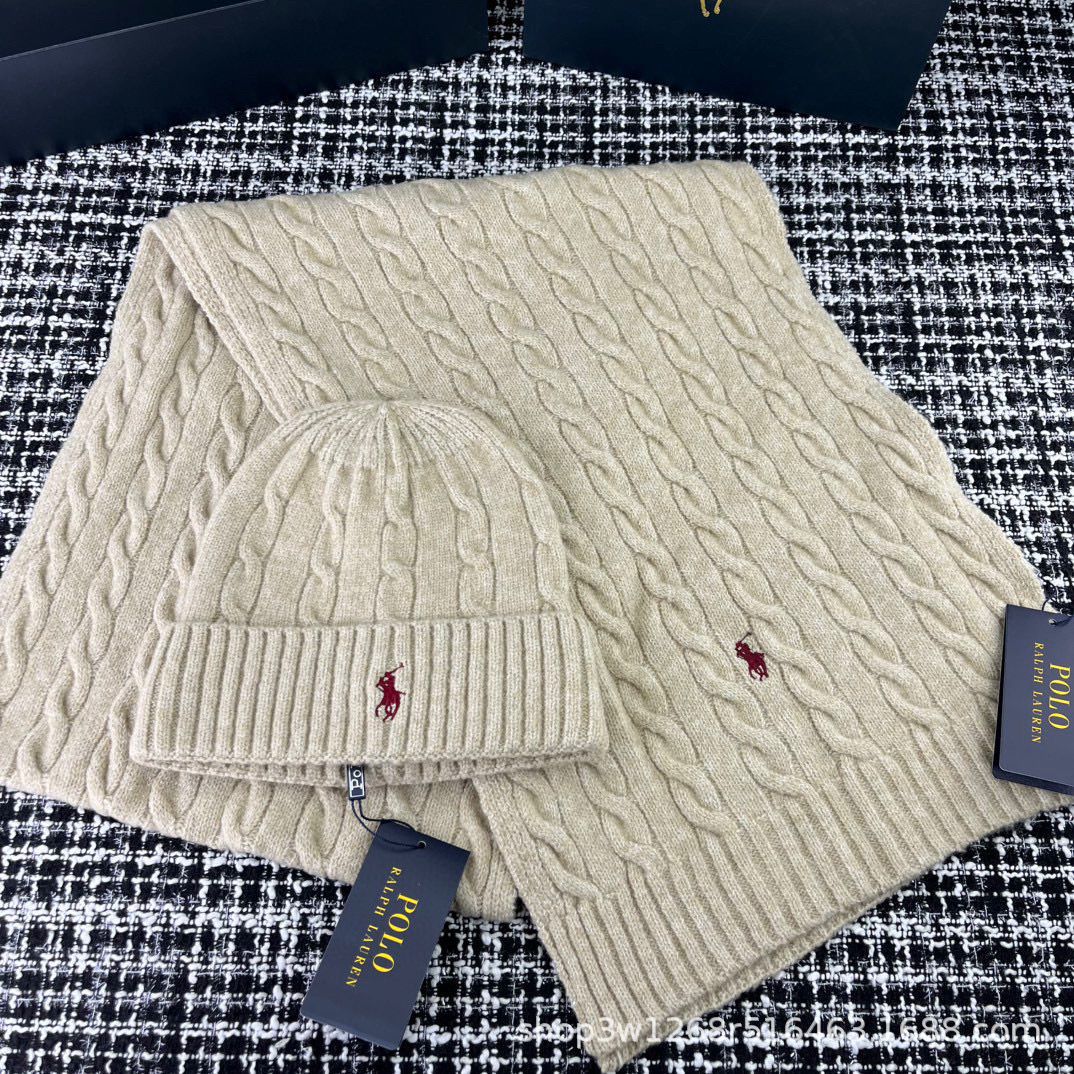 ファッション冬の新しいカップルの古典的なポニー刺繍麻花はウールのレトロな英倫マフラー帽子を含んでいる