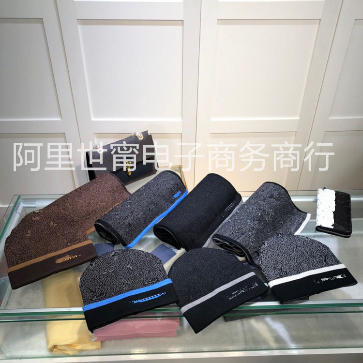 欧米風v字母メリヤスウール刺繍マフラー帽子セット秋冬老花柄ジャカード保温マフラー