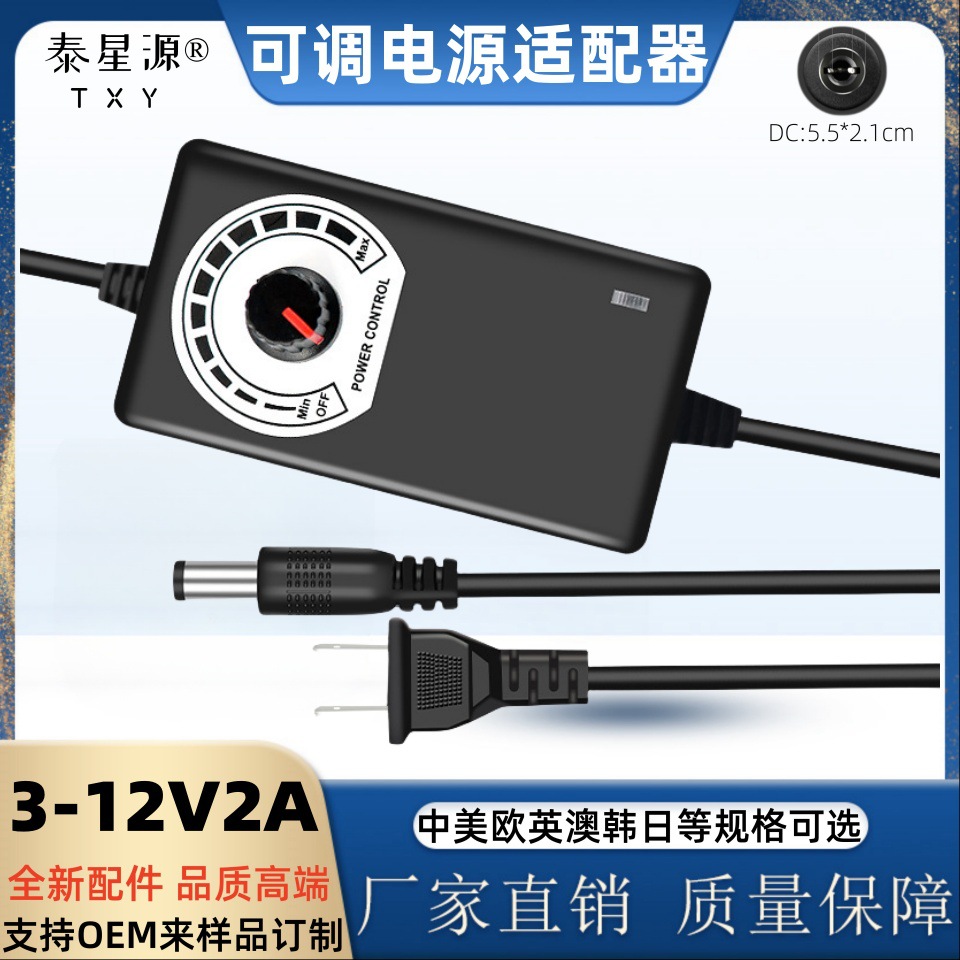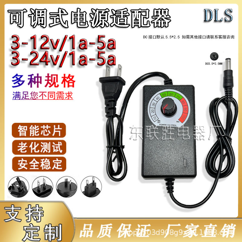 3-12V2A/5A 調整可能な電圧電源アダプタ 60W 無段階調光可能なライト、ウォーターポンプモーター速度調整可能な電源 24W